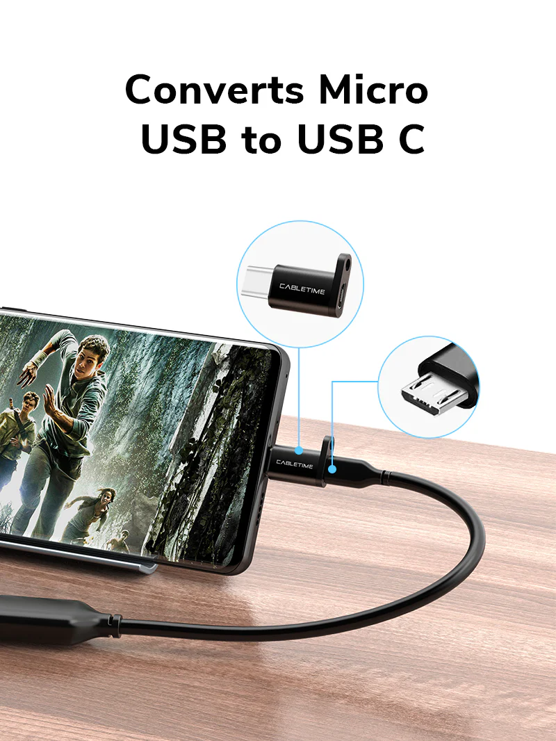 Просто подключите этот адаптер к кабелю micro USB и подключите USB C к телефону, планшету или компьютеру. Не требует сложной установки или драйверов.