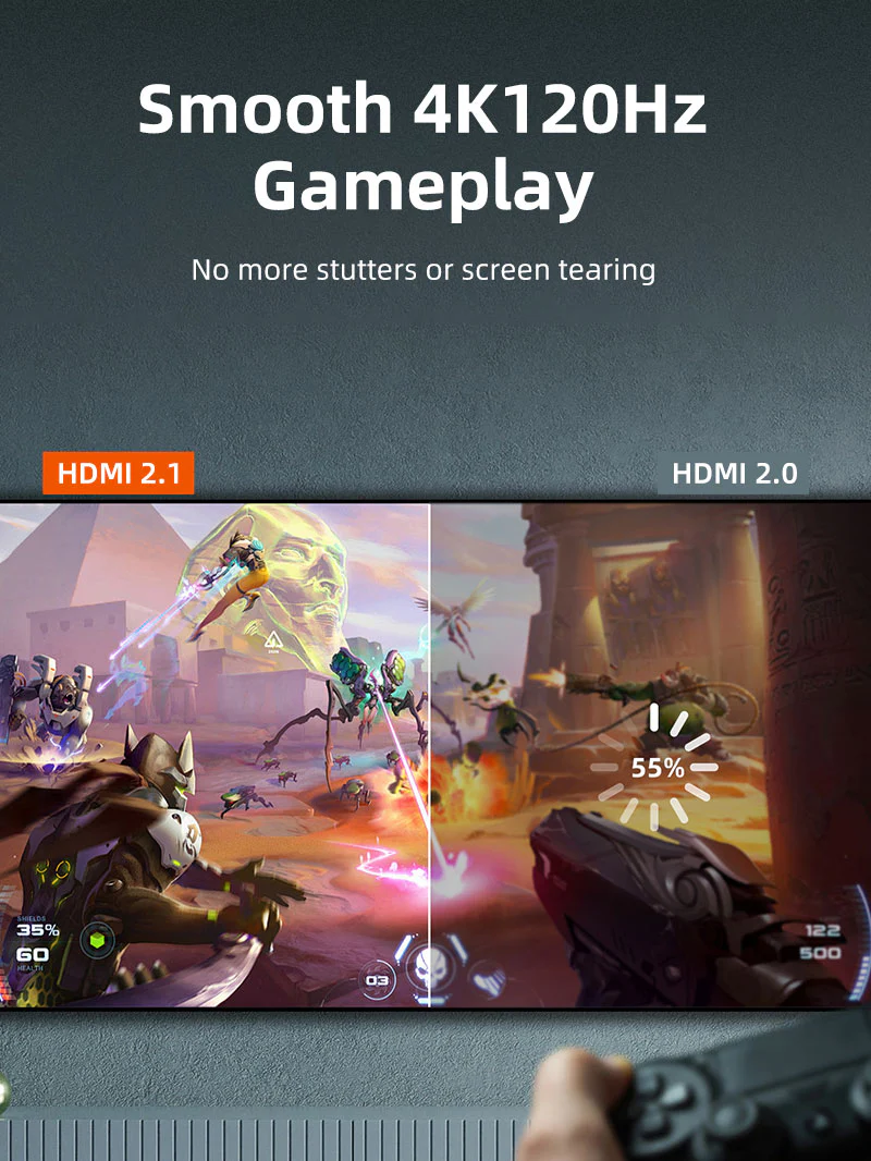 Сверхбыстрая производительность 48 Гбит/с: Молниеносная скорость передачи данных до 48 Гбит/с означает, что вы никогда не столкнетесь с буферизацией или задержками. Играйте в игры с высоким разрешением или смотрите контент 4K без перерывов, обеспечивая плавное и высокопроизводительное подключение для всех ваших медиафайлов.