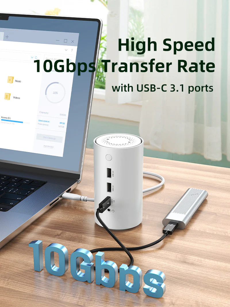 Эта док-станция оснащена 1 портом USB 3.1, обеспечивающим скорость передачи данных до 10 Гбит/с, что позволяет передавать фильмы за считанные секунды.