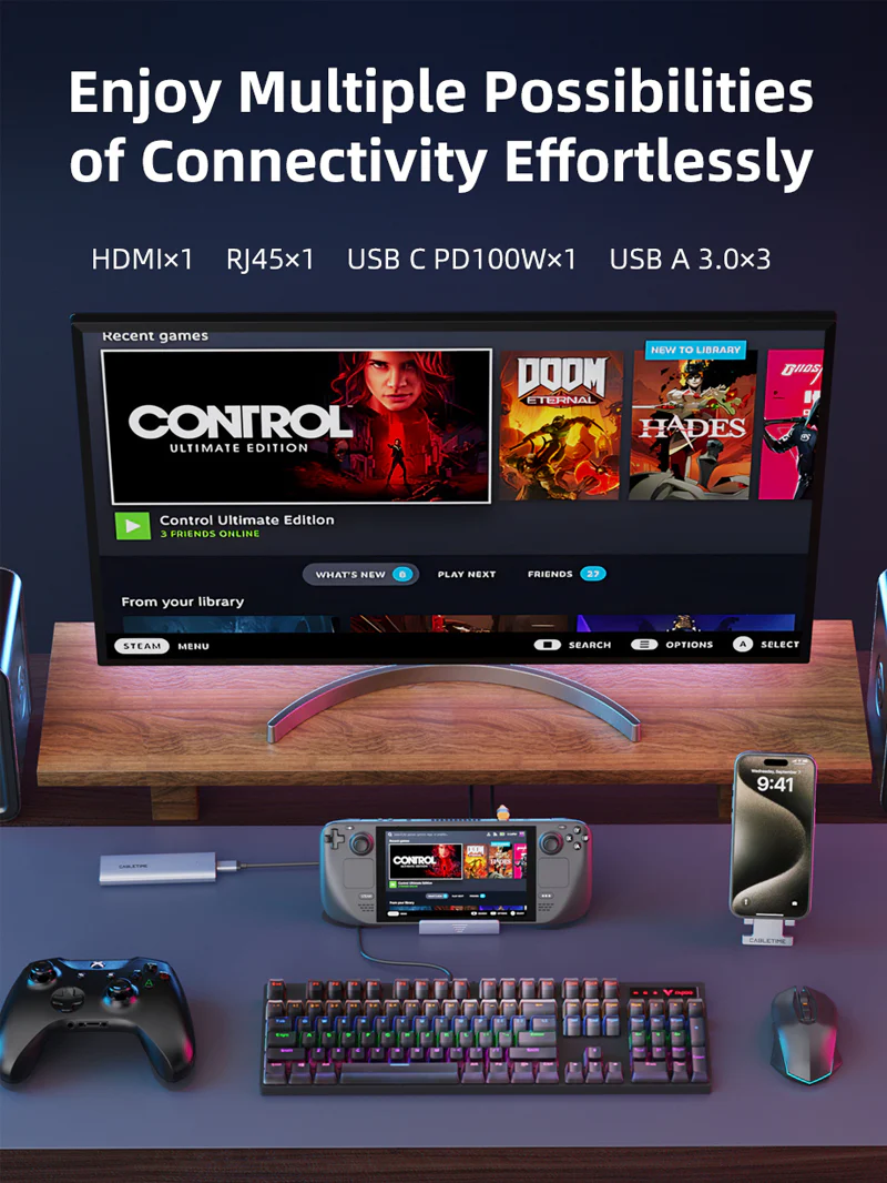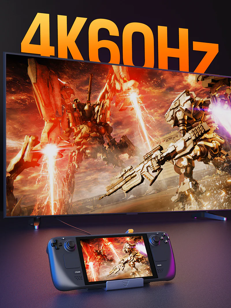 Погрузитесь в потрясающий визуальный праздник 4K с нашей Steam Dock. Благодаря порту HDMI вы можете легко отразить или расширить свой Steam Deck на телевизор или ноутбук. Испытайте свои любимые игры в большом масштабе с большим экраном 4K, вытаскав свои игровые сессии на новые высоты ясности и погружения.