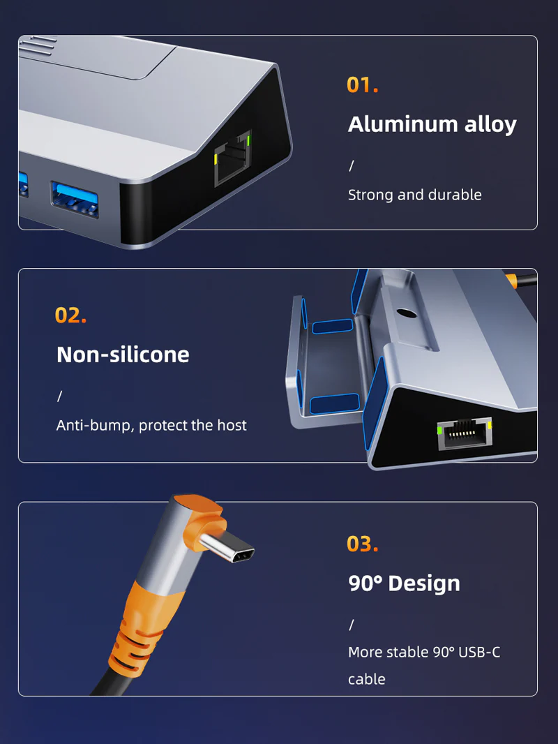 Возьмите свои игры с собой, куда бы вы ни пошли с Cabletime Steam Dock. Его компактная складная конструкция и прочный алюминиевый корпус, усиленный силиконом с защитой от ударов, обеспечивают комфорт и долговечность. Кабель с углом 90 градусов в комплект входит для легкого подключения.