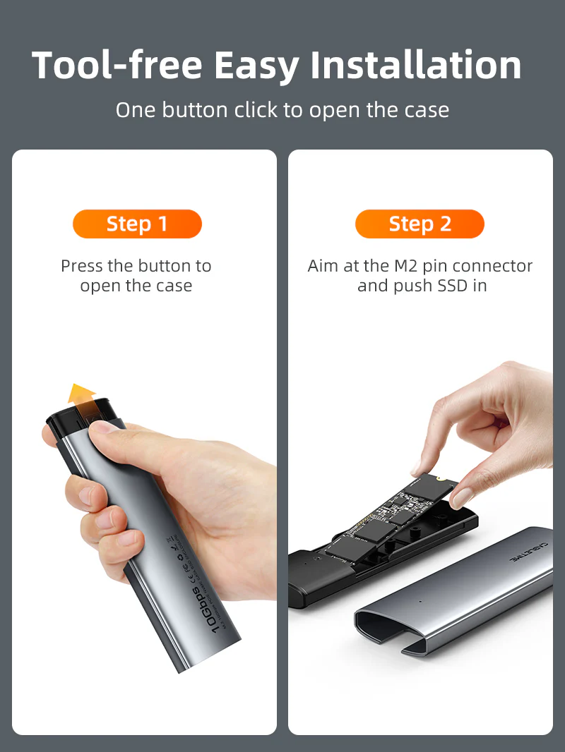 Установка без инструментов: 100% без инструментов для быстрой и простой установки вашего M.2 NMVe SSD или M.2 SATA SSD. Plug-and-Play, драйверы не требуются. Конструкция крепления корпуса USB 3.1 NMVe PCIE M 2 SSD обеспечивает стабильную и быструю передачу данных.