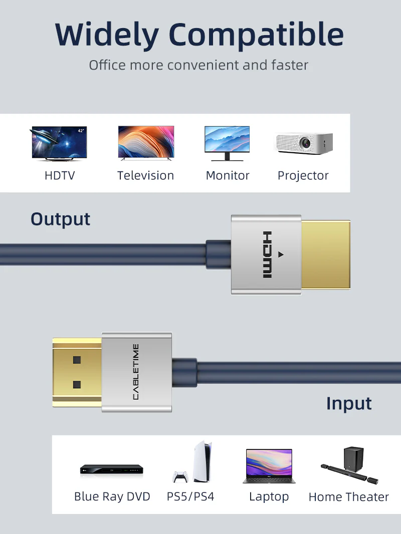 Тоньше обычных кабелей HDMI, но его можно сгибать 10 000 раз без снижения гибкости кабеля, чтобы выдерживать ежедневное использование.