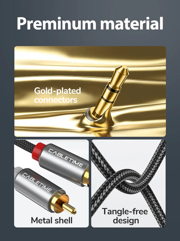 Разработан с металлическим корпусом для большей прочности и долговечности. Не спутывающийся плетеная оболочка гарантирует, что 3,5 мм 3,5 мм на 2 штекера RCA аудио стереокабель является гибким и достаточно прочным.