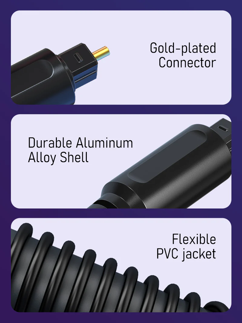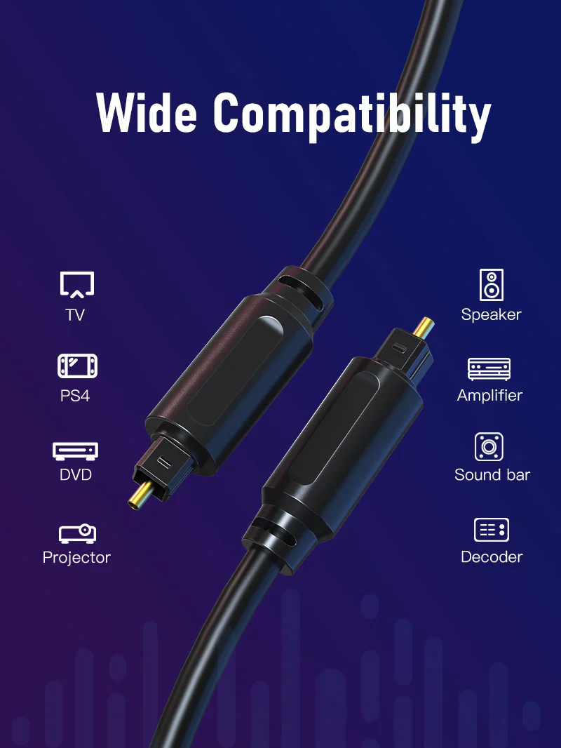 Кабель передает чистый, реалистичный звук без задержек или помех сигнала, подключи и работай, легко подключается к проигрывателю компакт-дисков, домашнему кинотеатру или другой аудиосистеме с портом toslink и погружает вас в пиршество потрясающего звука.