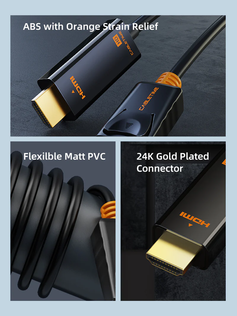 Кабель DisplayPort-HDMI поддерживает расширение или дублирование ноутбука или компьютера, оснащенного DisplayPort, на внешний дисплей HDMI, например HDTV, монитор или проектор. Он обеспечивает разрешение видео до 1920 × 1080 при 60 Гц и синхронизацию звука. Позолоченные разъемы 24K сохраняют кабель устойчивым к коррозии, а прочная оболочка из ПВХ выдерживает повседневное использование. Подключи и работай, установка драйверов не требуется, прост в использовании.