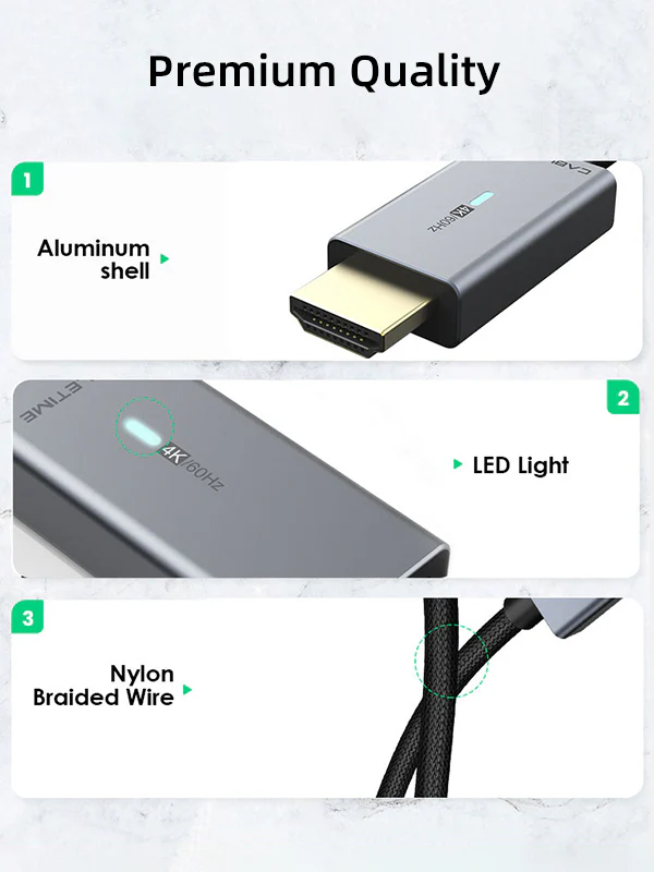 Этот кабель имеет уникальный дизайн, который упрощает его использование. Когда Мини DisplayPort к HDMI кабель работает, индикатор на разъеме HDMI загорится, чтобы убедиться, что кабель работает правильно.