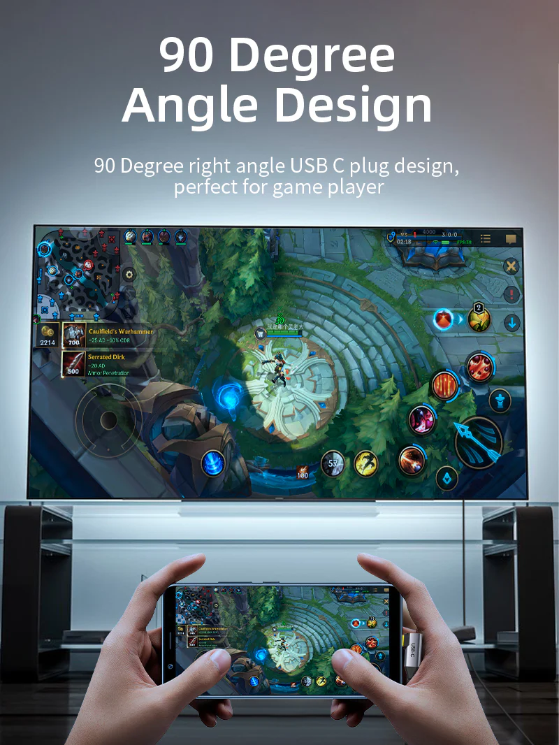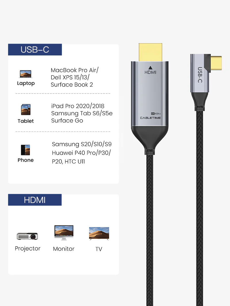 Конструкция с углом наклона 90 градусов снижает износ и обеспечивает большее удобство и комфорт в руке. CABLETIME Кабель USB 3.1 Type C — HDMI — лучший выбор для геймеров и ограниченного пространства.