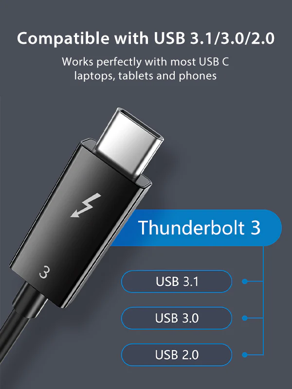- Универсальность и совместимость: Подходит для использования с различными устройствами, оснащенными портами Thunderbolt 3, включая компьютеры MacBook Pro, iMac Pro, а также многие модели ПК с поддержкой этого стандарта.