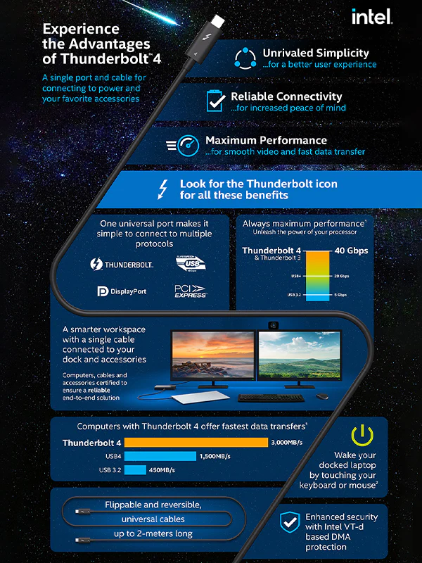 Мы используем лучший чип Cypress для обеспечения производительности кабеля thunderbolt 4. Сейф, сертифицированный Intel.