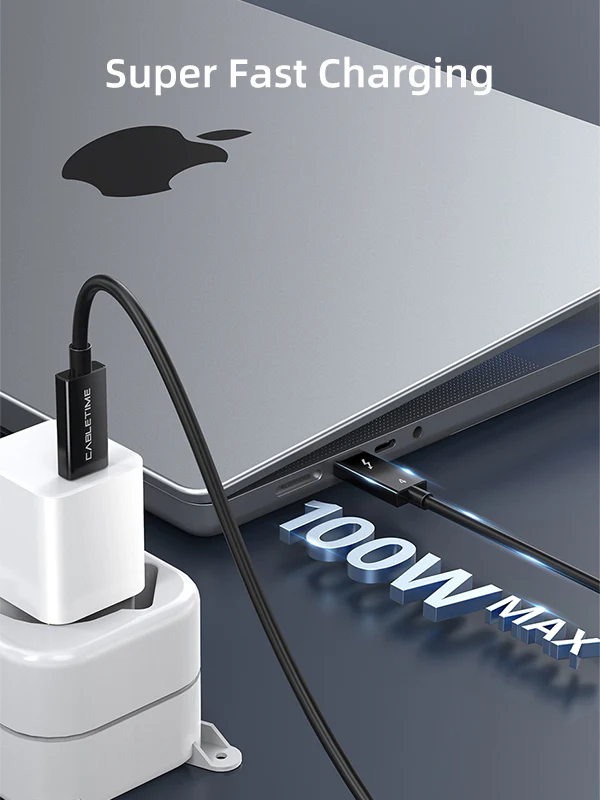 Кабель Cabletime thunderbolt 4 поддерживает сверхбыструю зарядку, подачу питания до 100 Вт и в 8 раз быстрее, чем стандартные USB-C кабели, совместим с несколькими протоколами высокоскоростной зарядки.