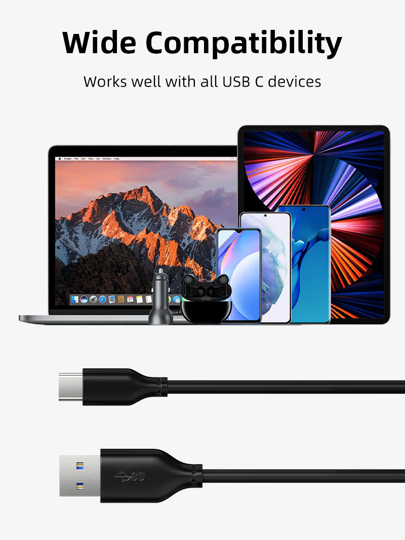 Кабель USB 3.0 A-C поддерживает USB 3.0 и может передавать файлы со скоростью до 5 Гбит/с, что в 10 раз быстрее, чем USB 2.0 (480 Мбит/с), который может передавать 1 ГБ файлов всего за 5 секунд.