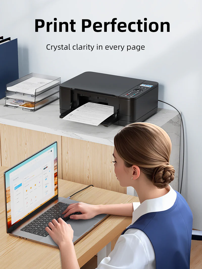 Кабель принтера USB C изготовлен с прочной алюминиевой оболочкой и прочной плеткой курткой для повседневного использования. Он достаточно гибкий, чтобы вписаться в любое рабочее пространство, не жертвуя производительностью. Кроме того, тройное экранирование защищает от помех от других электрических устройств, обеспечивая надежное соединение каждый раз.