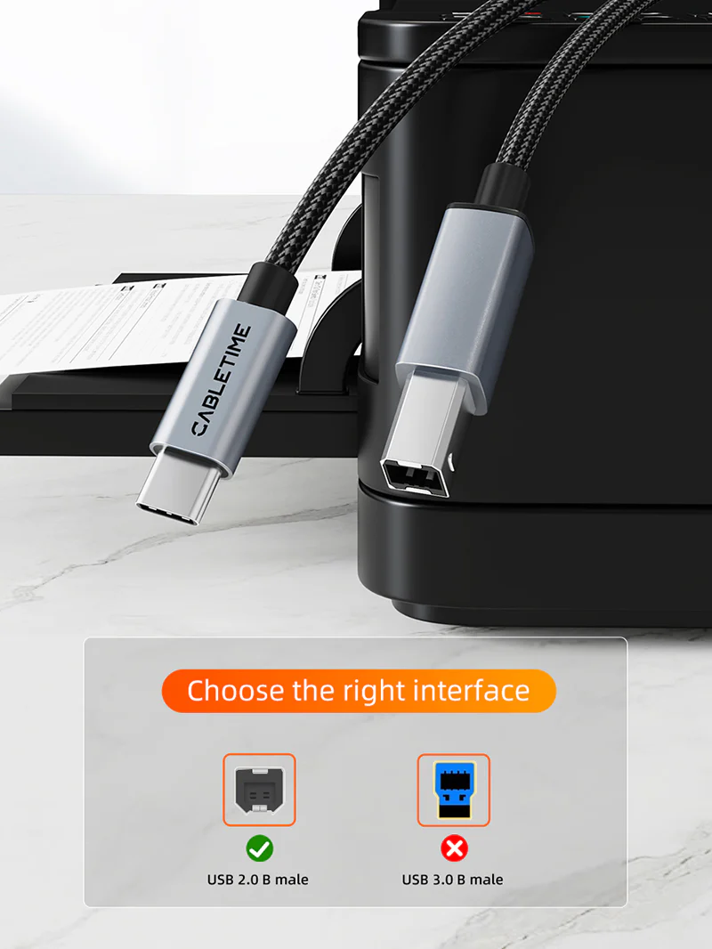 Кабель принтера типа C CableTime предназначен для легкости подключения устройств USB Type-C к широкому диапазону периферийных устройств USB B 2.0. Будь то принтер, сканер, выключатель принтера, внешний жесткий диск или аудиооборудование, такое как цифровое пианино Yamaha Casio, MIDI -контроллер или электрическая клавиатура, этот кабель обеспечивает бесшовную совместимость и надежные соединения без каких -либо проблем.