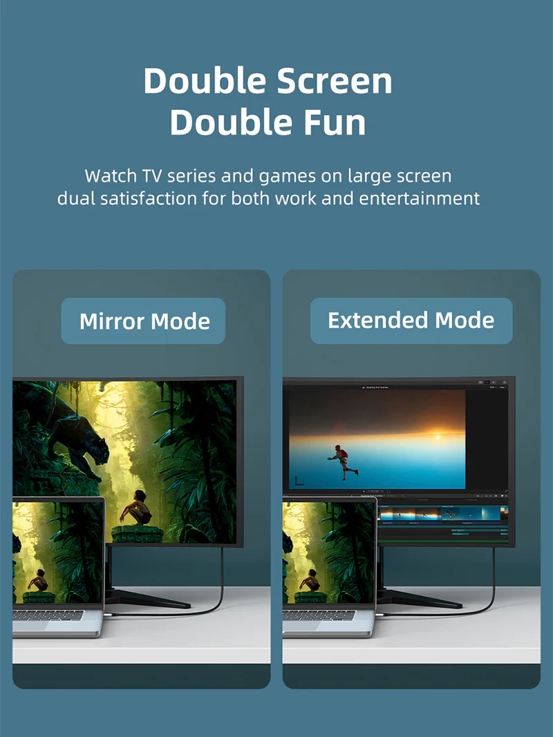 Кабель usb c to dp 1.4 поддерживает режимы зеркалирования и расширения, чтобы легко расширить ваше устройство usb c (например, Macbook pro, air) на телевизоры, проекторы и мониторы с портами дисплея. Он позволяет смотреть сериалы и игры на большом экране, получая двойное удовольствие от работы и развлечений.