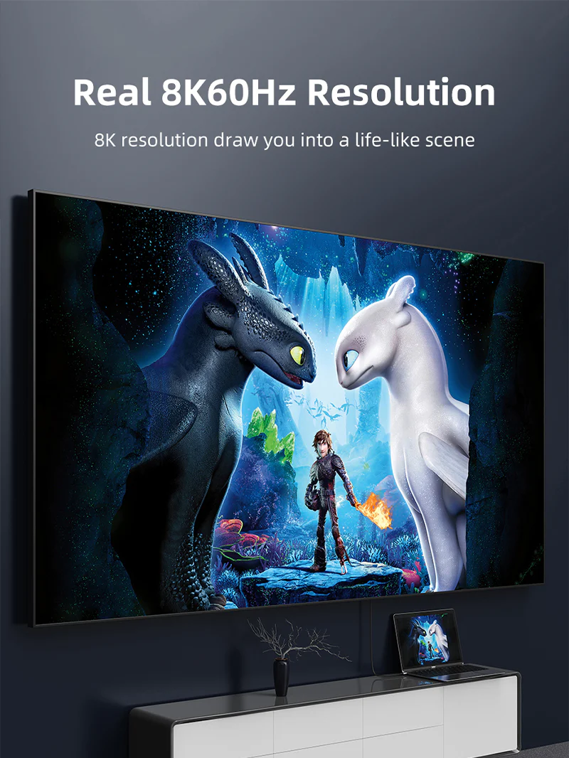 Кабель USB C-HDMI 2.1 поддерживает зеркальный режим и режим расширения. Вы можете легко отразить или расширить свой экран для потоковой передачи 8K UHD или 3D-видео непосредственно на HDTV, монитор или проектор.