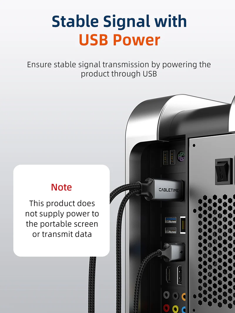 Представьте себе: вы только что купили новый стильный монитор USB-C, но ваше любимое устройство HDMI не подключается. Раздражает, правда? Больше нет. Наш кабель HDMI-USB-C мгновенно решает эту проблему, делая подключение устройств HDMI к новейшим дисплеям USB-C проще, чем когда-либо. Независимо от того, являетесь ли вы геймером, жаждущим более плавных визуальных эффектов, профессионалом, которому нужны надежные соединения, или просто тем, кто хочет получить беспроблемный технический опыт, этот кабель для вас. Благодаря поддержке потрясающего разрешения 4K60 Гц каждый пиксель выглядит реалистично — идеально для игр, потоковой передачи или даже работы из дома. Не нужно загружать драйверы или возиться со сложными настройками. Просто подключите его, включите с помощью адаптера USB-A-5 В или порта USB вашего компьютера, и вы готовы к работе. Кабель HDMI–USB Type C от CABLETIME рассчитан на длительный срок службы благодаря позолоченным штекерам, элегантному алюминиевому корпусу и прочной нейлоновой оплетке, которая выглядит так же хорошо, как и работает.