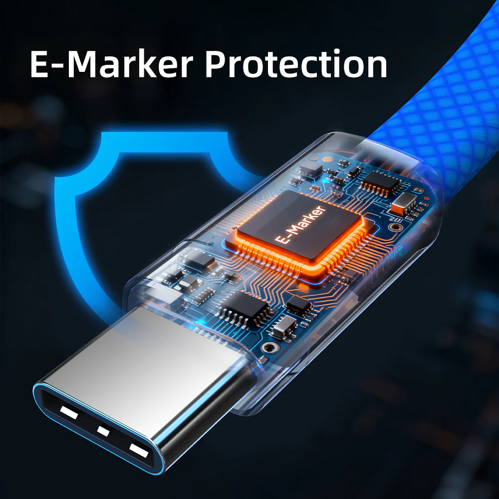 Электронный маркер для интеллектуальной защиты: Магнитный зарядный кабель CABLETIME, оснащенный усовершенствованным интеллектуальным чипом E-Marker, автоматически определяет требования к питанию вашего устройства и регулирует выходную мощность для оптимальной производительности. Это предотвращает перегрев, перегрузку по току и скачки напряжения, одновременно продлевая срок службы батареи. Наслаждайтесь более быстрой, безопасной и разумной зарядкой — продуманная точность, обеспечивающая защиту ваших устройств при каждом подключении к сети.