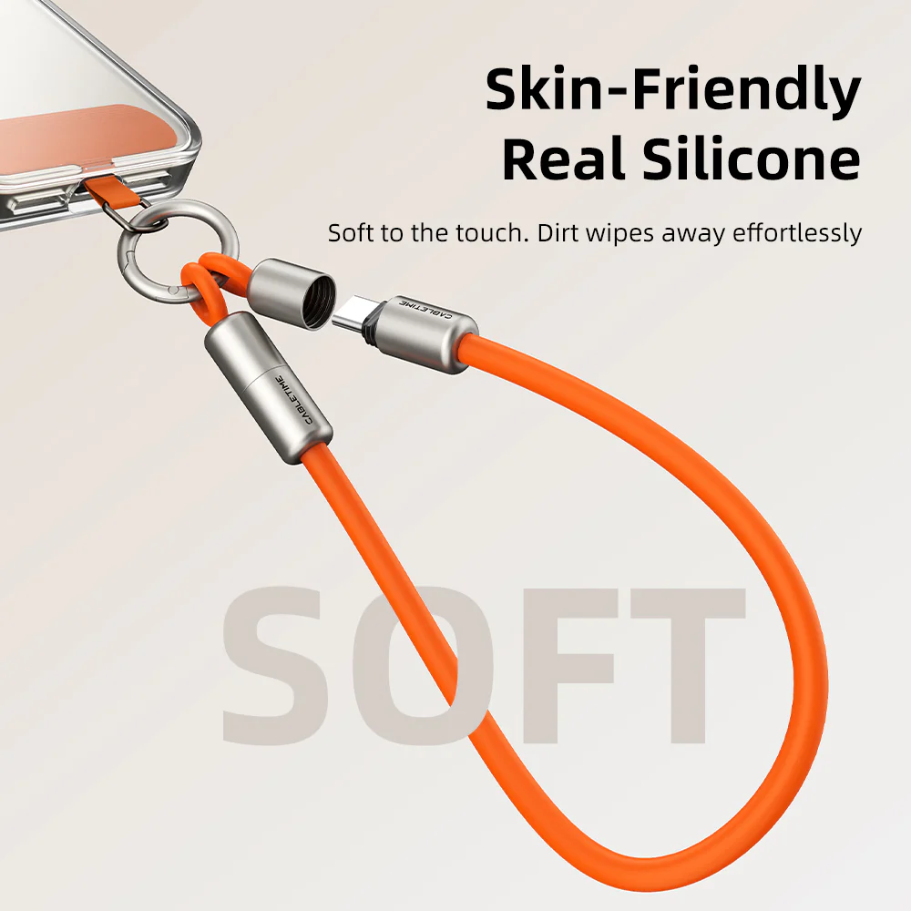 Мягкий и надежный: Изготовлен из жидкого силикона, он мягок на ощупь, устойчив к загрязнениям и легко чистится. Разъемы заключены в колпачки из высококачественного алюминиевого сплава, защищающие штекерные концы USB-C от окисления, ворса и повреждений, гарантируя, что кабель передачи данных вашего брелка прослужит даже при ежедневном износе.