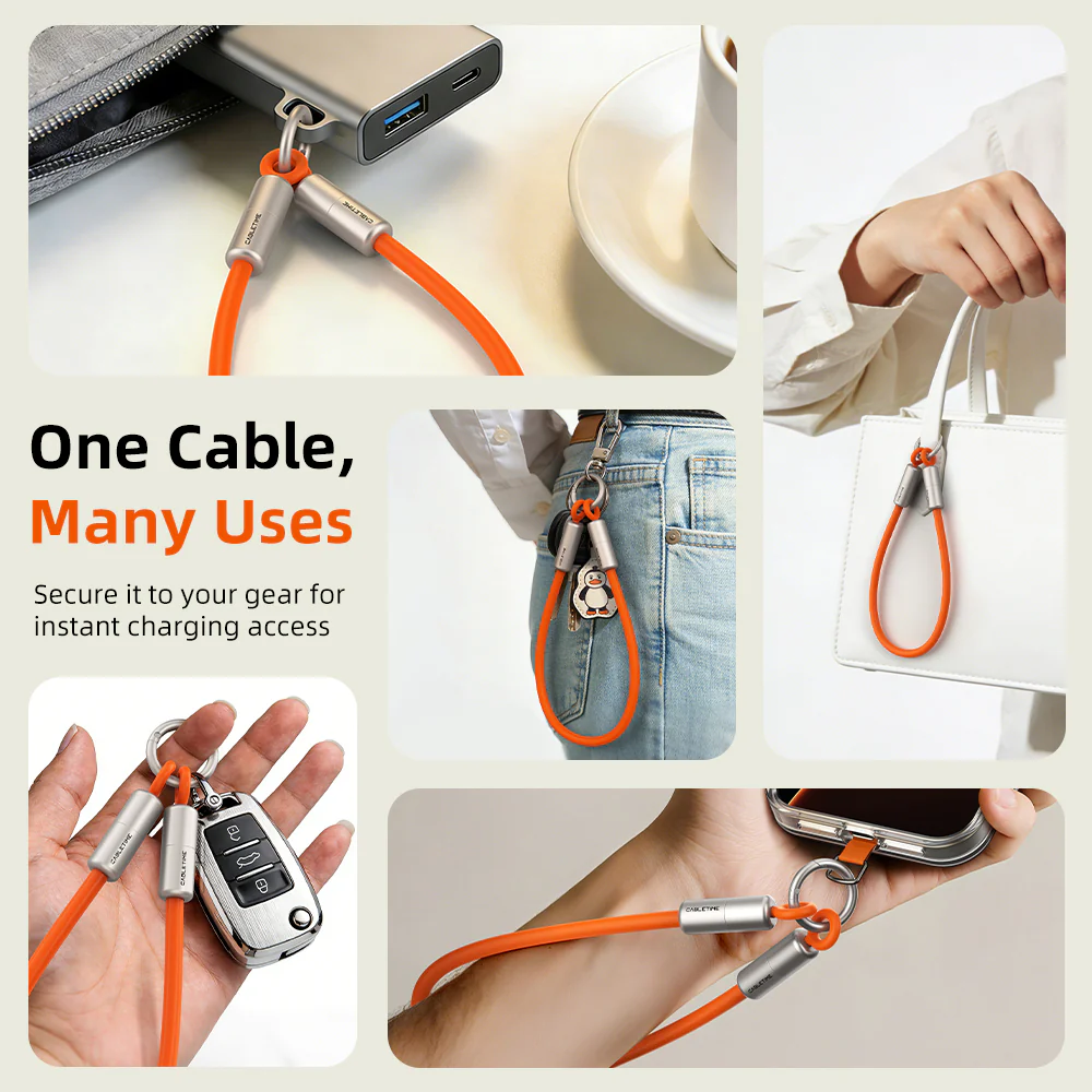 Всегда в пределах досягаемости: Самая большая проблема с зарядными кабелями — забыть их взять с собой. Кабель для зарядки брелка мгновенно решает эту проблему. Благодаря надежному зажимному механизму он легко интегрируется в брелок для ключей, рюкзак или сумочку. При весе менее 25 г он практически невесом и обеспечивает немедленный доступ к кабелю-брелку USB C для аварийного питания или передачи данных без путаницы длинных запутанных проводов в кармане.