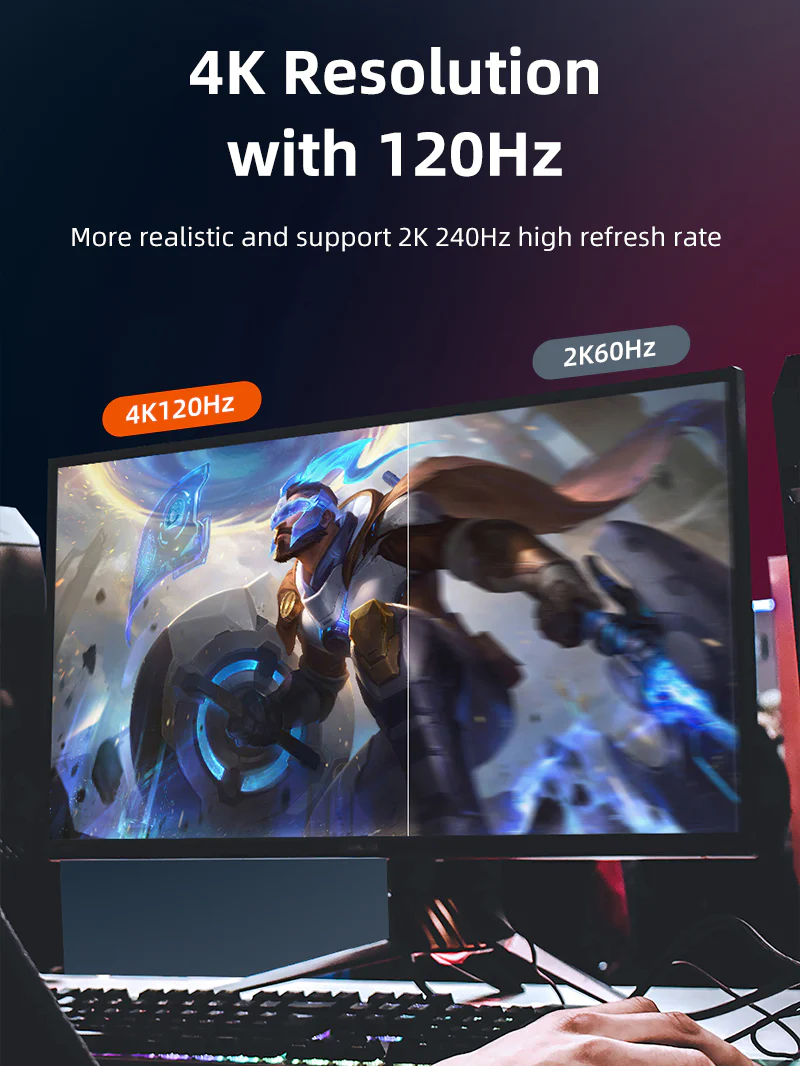 Максимальное выходное разрешение 8K: Ощутите исключительную четкость с разрешением 8K на одном дисплее или двух дисплеях 4K 60 Гц для по-настоящему захватывающего опыта. Идеально подходящий для игр, многозадачности и творческой работы, адаптер поддерживает 4K при 120 Гц и 2K при 240 Гц, обеспечивая плавные, яркие визуальные эффекты с высокой частотой обновления. Независимо от того, работаете ли вы, играете или транслируете, наслаждайтесь кристально чистым изображением и сверхплавной работой.