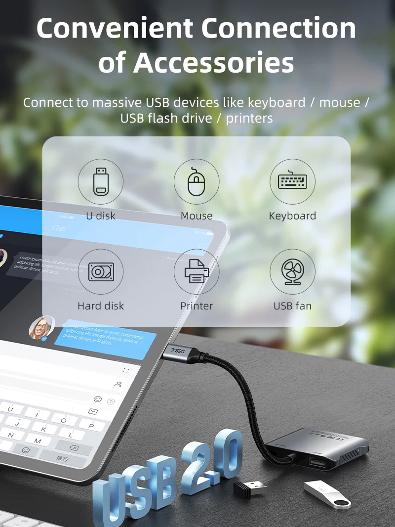 4-в-1 USB C-концентратор: CABLETIME USB-C to Dual DP-концентратор объединяет 2 выхода DP, USB 2.0 и 100 Вт Power Delivery в одном элегантном компактном дизайне. Он поддерживает разрешение 8K для потрясающего одного дисплея или двух дисплеев 4K, что делает его идеальным решением для тех, кому нужны несколько вариантов отображения для работы, игр или творческих задач.