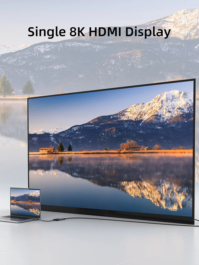 Максимальное разрешение 8K 30 Гц для одного дисплея: С этим многопортовым адаптером USB C зеркалируйте или расширяйте экран ноутбука для прямой потоковой передачи видео 8K UHD на любой дисплей с HDMI или DP. Поддерживает HDR для более реалистичных изображений.