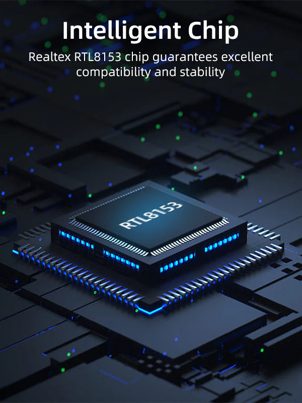 Интеллектуальный чип: В адаптере USB C Thunderbolt 3 – Gigabit Ethernet используется чип Realtex RTL8153, который обеспечивает превосходную гибкость для совместимости и производительности. Обеспечение сверхбыстрого, стабильного и безопасного потока данных.