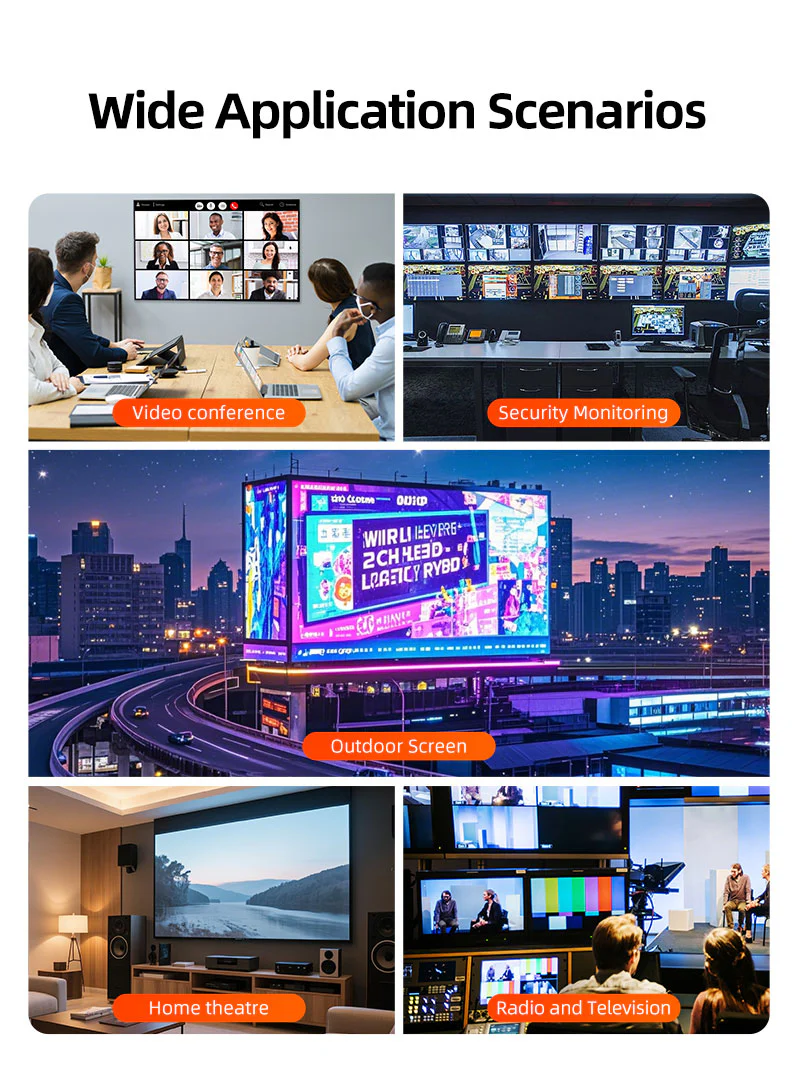 HDMI Loop для мгновенного локального просмотра: Встроенный выходной выход HDMI позволяет подключить дисплей непосредственно к передатчику для мониторинга в реальном времени без дополнительных сплиттеров. Эта функция идеально подходит для настройки, где вам нужно просмотреть контент локально и удаленно одновременно, например, живые события, безопасность или контрольные помещения.