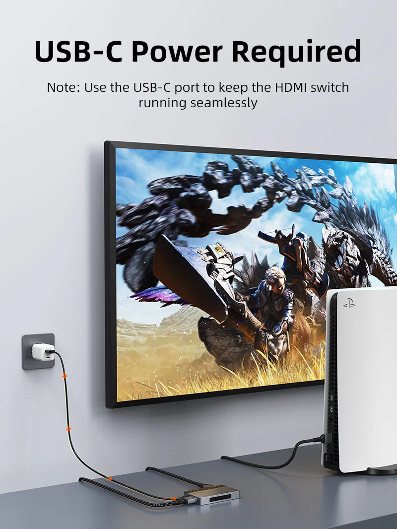 Подключи и работай: Переключатель HDMI CABLETIME 3 в 1 не требует установки программного обеспечения — просто подключите его и начните использовать сразу же. Благодаря гладкому дизайну из алюминиевого сплава он одновременно стильный и долговечный. Для оптимальной производительности порт питания USB-C обеспечивает стабильное соединение и плавную передачу видео. Встроенный усовершенствованный чип обеспечивает бесперебойную и надежную работу, что делает его идеальным для любой настройки HDMI.