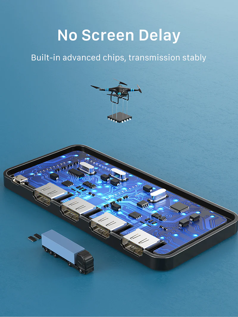 Усовершенствованный чип внутри: Усовершенствованные чипы переключателя HDMI обеспечивают стабильную работу, поэтому вы можете мгновенно переключаться между устройствами. Наслаждайтесь всеми любимыми медиа без искажений или задержек! Обновите свое устройство прямо сейчас!