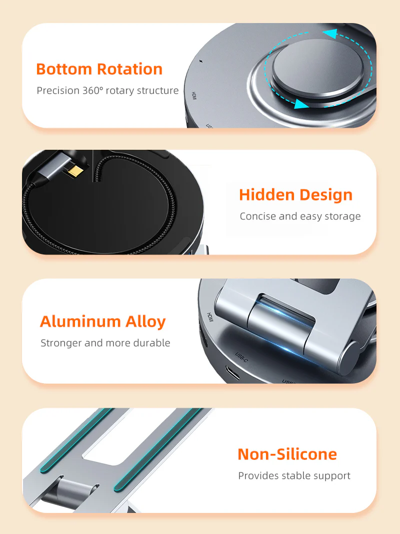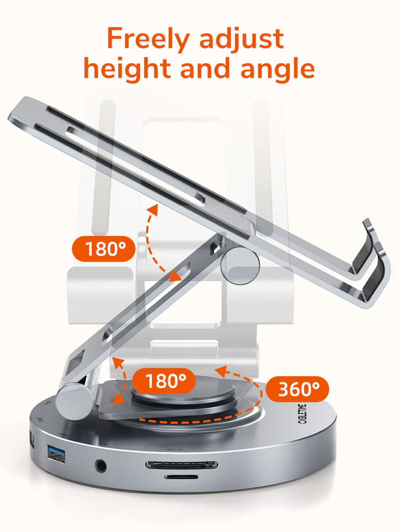 Док-станция для телефона/планшета USB CABLETIME CB02G (CT-HUBC8-AG) 8-в-1, алюминиевый USB-хаб с 360° подставкой для iPad Pro и ноутбука