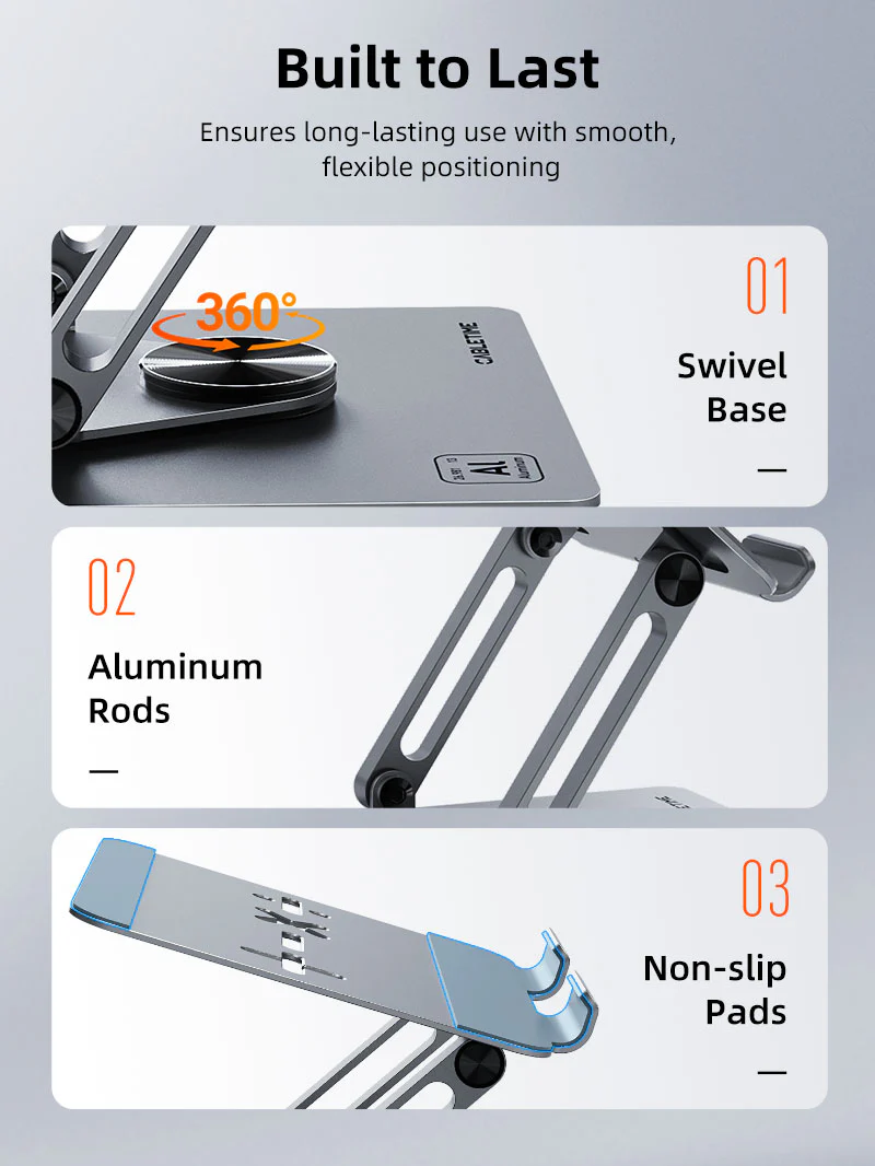 Непревзойденная стабильность: Эта подставка для ноутбука настольного настольного ноутбука, разработанная для получения прочного алюминиевого сплава до 10 кг (22 фунта). Его двойная поддержка, надежные металлические петли и анти-скользящие прокладки обеспечивают безопасную и устойчивую основу для вашего ноутбука, обеспечивая стабильность во время интенсивной работы или игровых сессий. Разработанный для обеспечения безопасности вашего устройства и стабильного, это окончательная поддержка производительности и производительности.