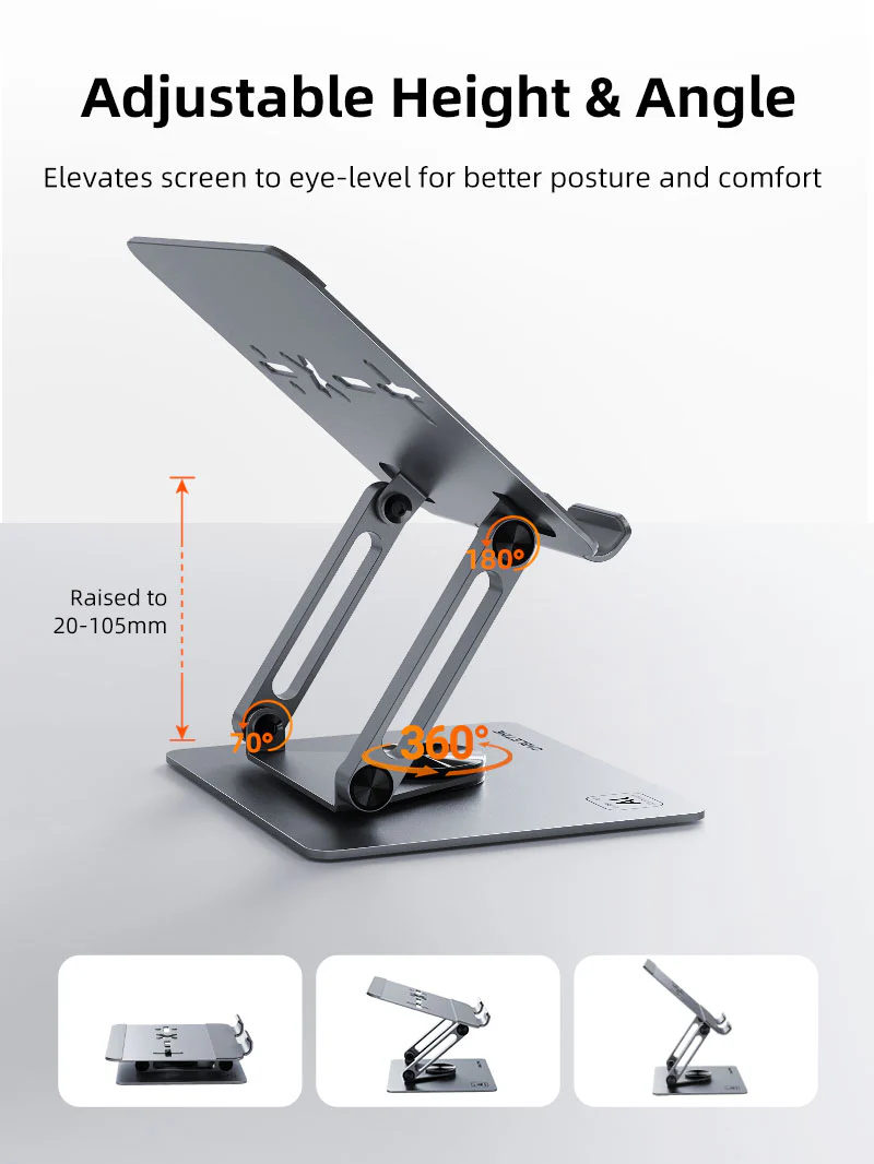 Приспособитесь к своей идеальной высоте: Эта портативная складная регулируемая подставка для ноутбука позволяет плавно поднимать или опустить устройство с 4 см до 20 см, обеспечивая оптимальную высоту и угол для комфорта и производительности. Независимо от того, нужно ли вам высокое, низкое или компактное сложенное положение, оно легко адаптируется к вашим предпочтениям. Идеально подходит для уменьшения напряжения и улучшения эргономики в работе, обучения или игровых настройках.