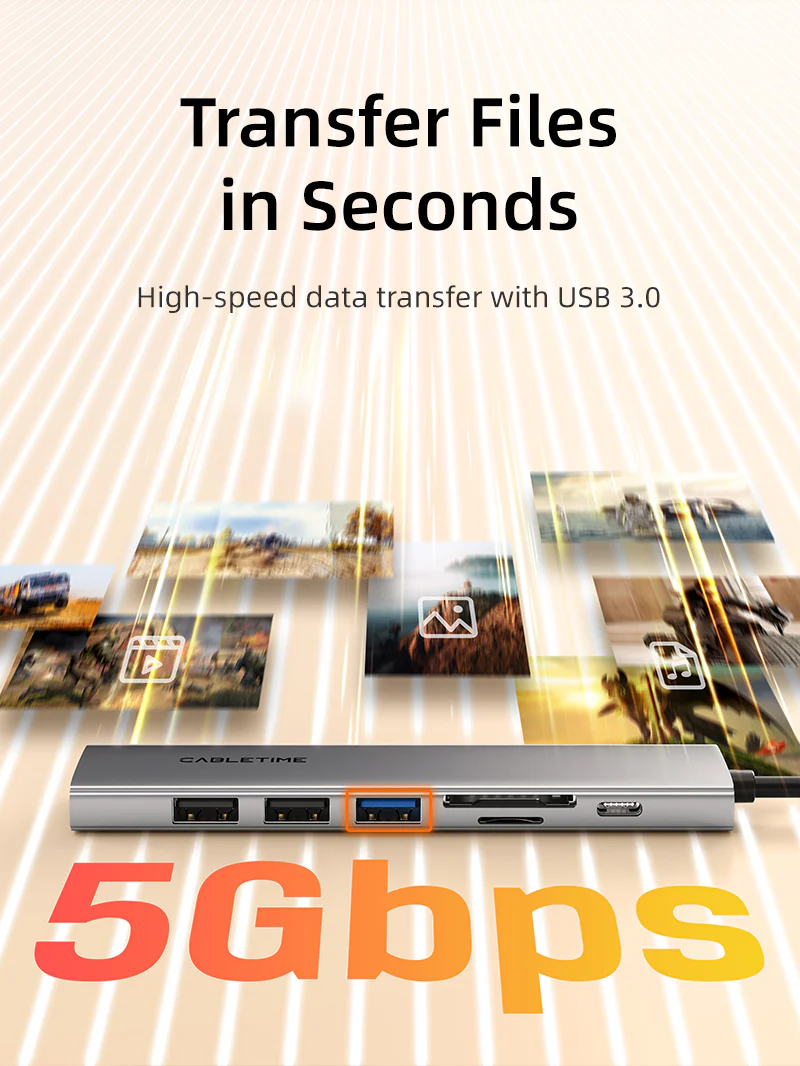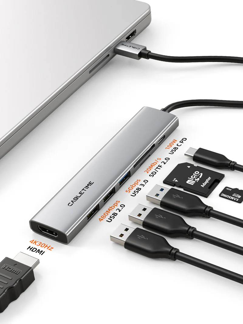 Легкий и тонкий дизайн: Сверхтонкий и легкий дизайн многопортового концентратора Cabletime USB-C 7 в 1, всего 4,51.10.4 дюйма, делает его идеальным спутником в путешествии. Гладкий корпус из алюминиевого сплава не только хорошо выглядит, но и улучшает рассеивание тепла, гарантируя, что концентратор останется прохладным под давлением. Его легко носить с собой и использовать, это ваше решение для подключенного образа жизни.