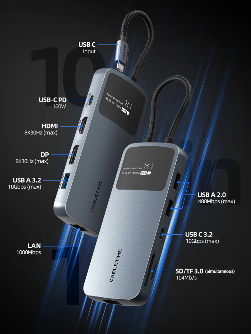 Обзор USB-C концентратора Cabletime 10-в-1: лучшеее решение при работе с ноутбуком