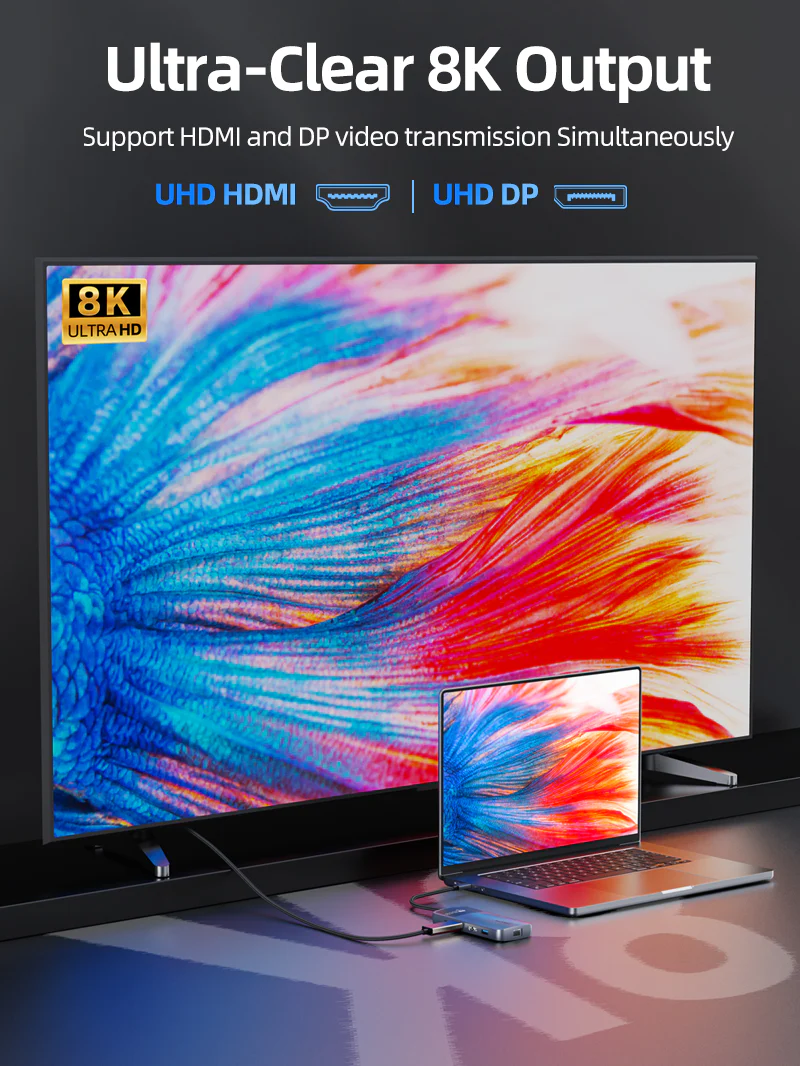Многофункциональный USB-C концентратор 10-в-1 от Cabletime расширит возможности современного ультрабука, добавив ему недостающих из-за своего тонкого корпуса возможностей. Концентратор позволяет подключить к ноутбуку дополнительную периферию, съемный накопитель или карту памяти, вывести изображение на большой экран или подключить интернет через кабель.