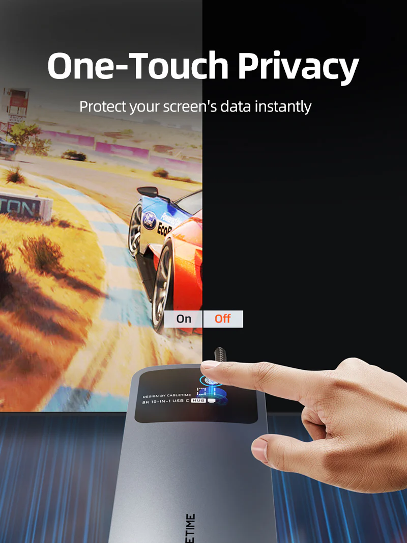 Полный контроль над дисплеем: Не позволяйте вашей конфиденциальности стать проблемой с этим концентратором USB-C! Всего одним щелчком вы можете надежно заблокировать свой дисплей — больше не нужно беспокоиться о том, кто подглядывает за вашим экраном! Поговорим о лучшей защите конфиденциальности!