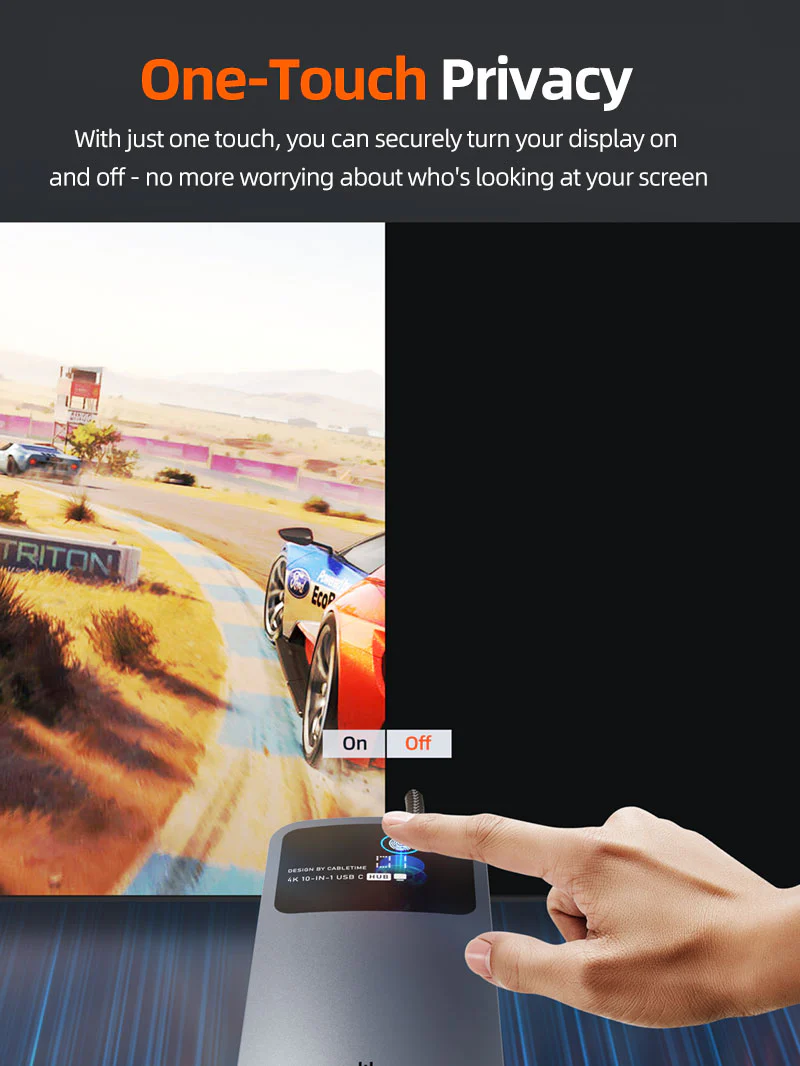 Вы можете быстро включить или выключить свой экран с прикосновением кнопки, чтобы вы могли работать или защитить свою конфиденциальность в минуты. Этот быстрый, простой контроль предназначен как для удобства, так и для безопасности.