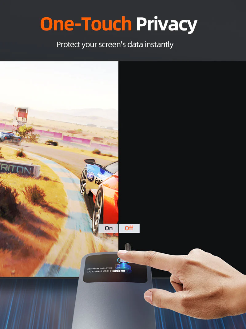 Познакомьтесь с удобством мгновенного управления экраном на прикосновении кнопки. Эта гениальная функция позволяет быстро включить свой дисплей для работы или игры и выключить для конфиденциальности, обеспечивая конфиденциальность вашей информации только одним прикосновением. Это идеальное сочетание безопасности и простоты для вашего душевного спокойствия.