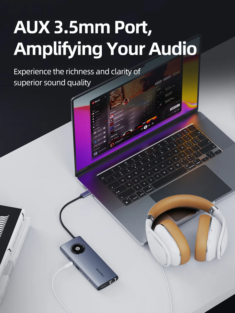 Скорость Ethernet 1000 Мбит/с и порт 3,5 мм: Оснащен портом Ethernet, который обеспечивает надежное высокоскоростное соединение до 1000 Мбит/с. Благодаря 3,5-миллиметровому аудио- и микрофонному порту вы можете легко подключать наушники и динамики для получения звука без потерь качества. Оставайтесь на связи и наслаждайтесь превосходным звучанием с этим концентратором USB C.