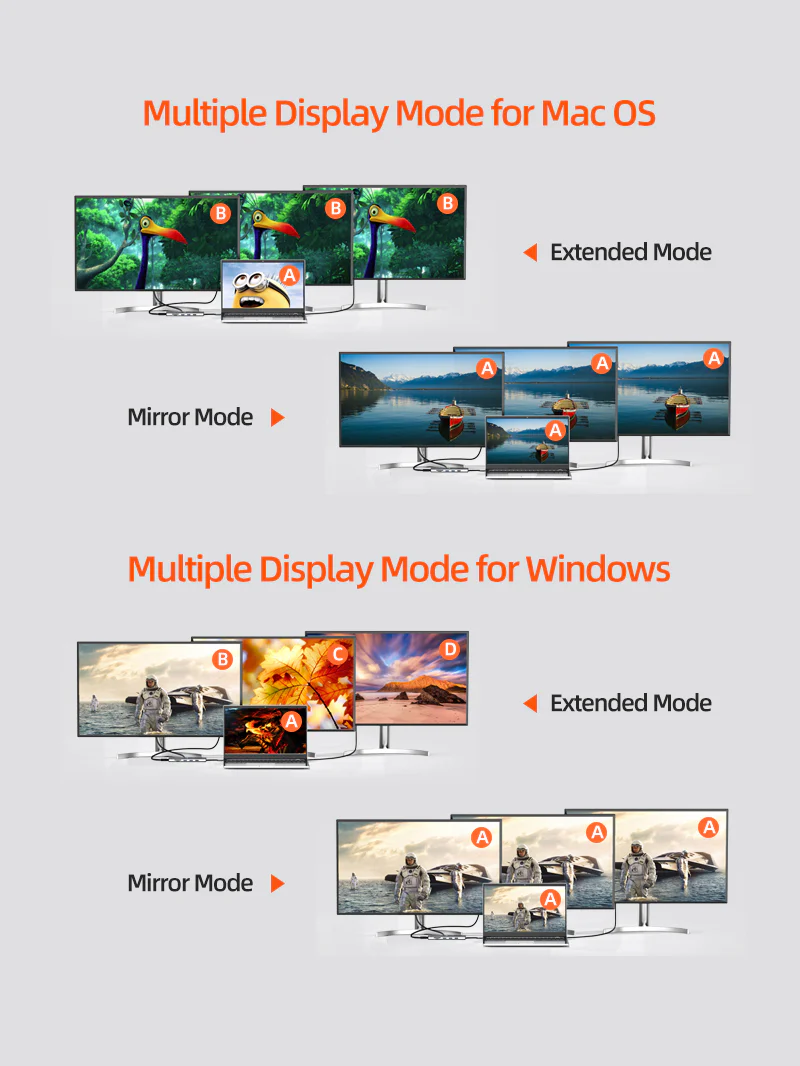 Максимальное количество дисплеев для трех устройств: Этот концентратор USB C разработан для систем Windows и MacOS, идеально подходит для удобной многозадачности.