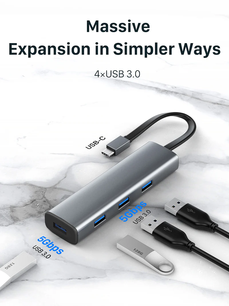 USB-Хаб CABLETIME CB21G (CT-HUBP4-AG) на USB3.0×4 4-в-1