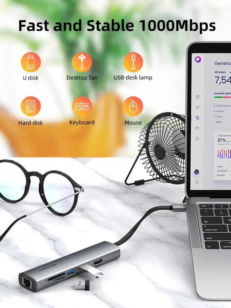 Стабильный Ethernet 1000 Мбит/с: Быстрый и стабильный проводной Ethernet со скоростью 1000 Мбит/с идеально подходит для работы в местах с нестабильным Wi-Fi или в гостиничных номерах. Порт RJ45 может определить вашу скорость Интернета и автоматически адаптироваться к самому высокому уровню, будь то 10/100/1000 Мбит/с.