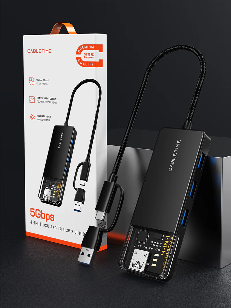 Компактный и портативный: USB-концентратор CABLETIME 4-в-1 разработан компактным и портативным, гарантируя, что у вас будет надежный концентратор, куда бы вы ни отправились. Расширьте свое мобильное рабочее пространство без громоздкости — эффективность и удобство действительно могут идти рука об руку!