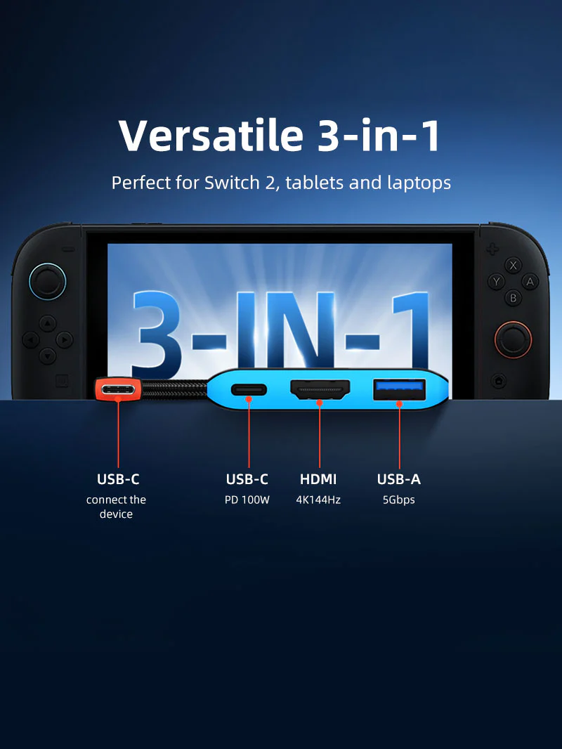 Один компактный концентратор, совместимый с Switch 2, Switch 1, Switch OLED и Switch Lite, что делает его лучшей док-станцией для Nintendo Switch для всех ваших игровых систем. Он также поддерживает ноутбуки, планшеты и смартфоны с режимом DP Alt Mode, обеспечивая плавное изображение в разрешении 4K, стабильное питание и надежное подключение — идеально для игр, стриминга и работы в любом месте.
